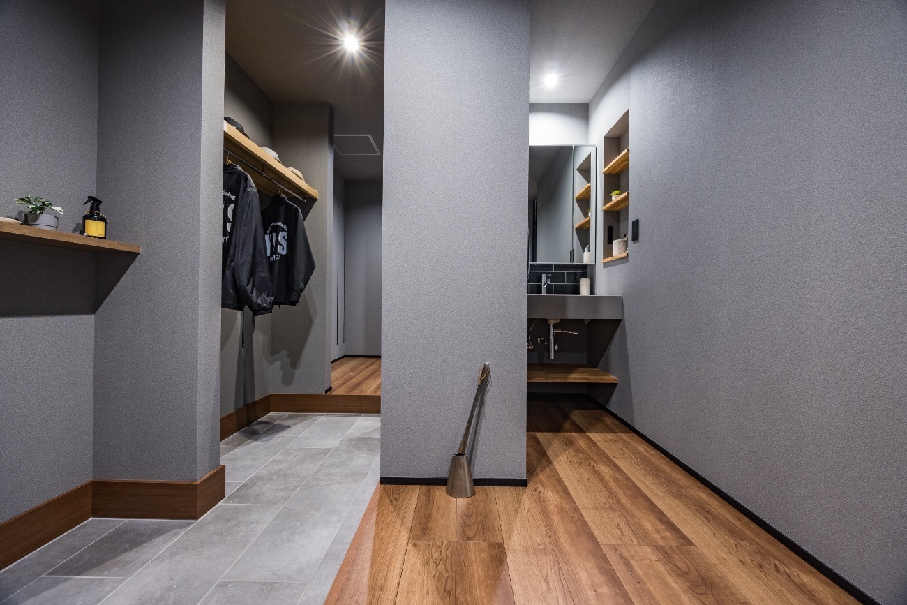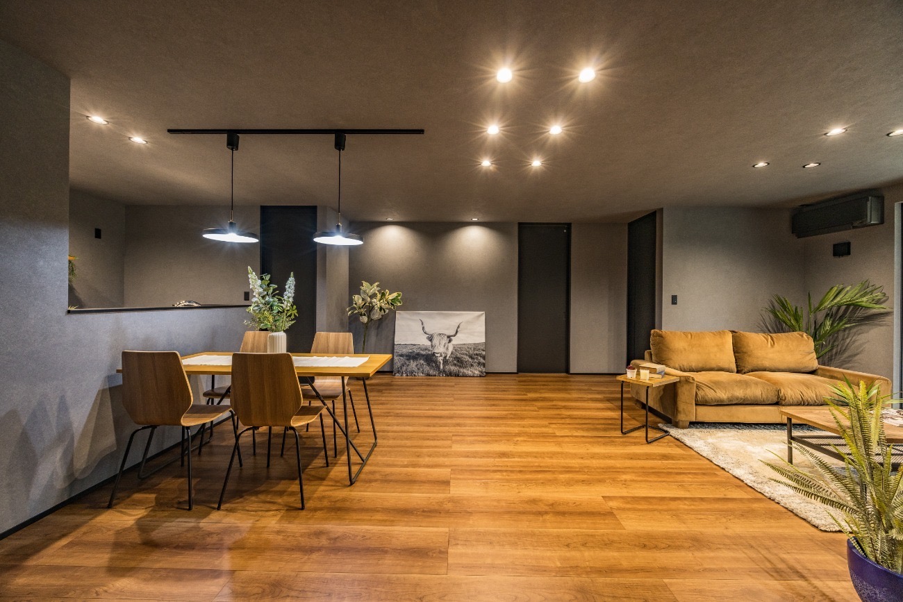 かっこよく、時には可愛くも見えちゃうお家に仕上がりました。床材、建具、照明、壁紙などそれぞれにこわだりを〜おうち全体で統一感のあるデザインに仕上がりました◎